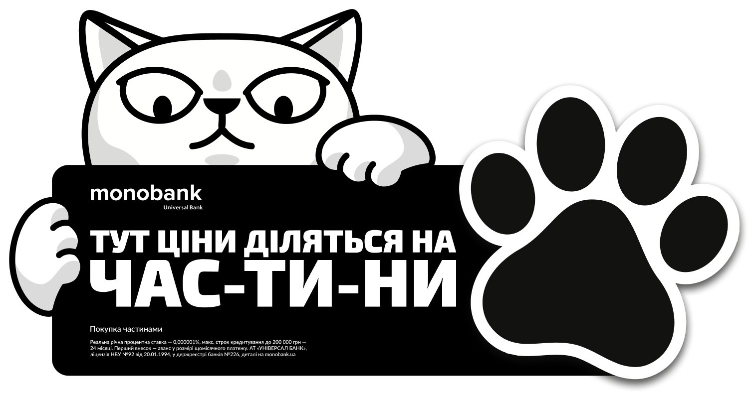 Доступна «Оплата частинами» від Monobank без жодних переплат.